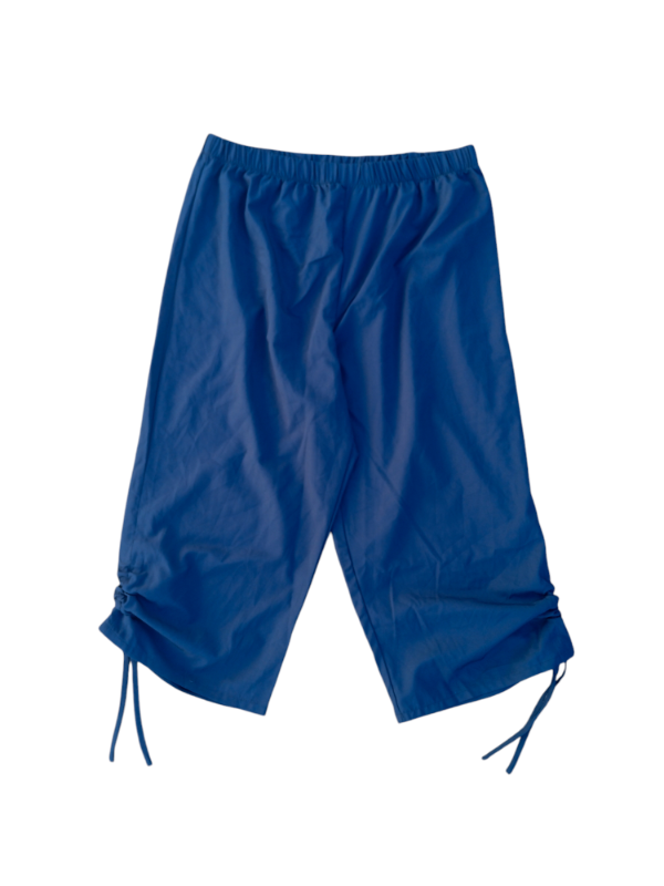 Capri color azul de segunda mano, importado. Tiene cintura con elastico y botamanga con ajustes. Tela.super liviana.