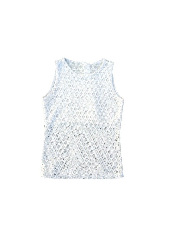 Top vintage de encaje blanco. Tiene forro en la parte del busto para evitar transparencia. Tela elastizada.
